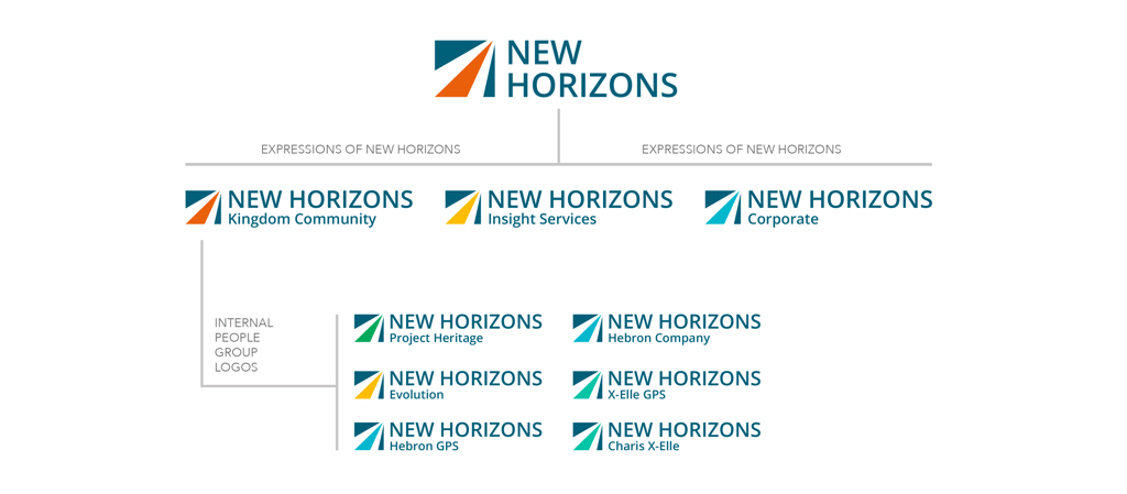 Because it’s so simple, it’s then easy to add various sub-titles that refer to specific expressions of the organisation which is New Horizons (when it is appropriate to do so). So, the church ‘expression’ of New Horizons becomes: