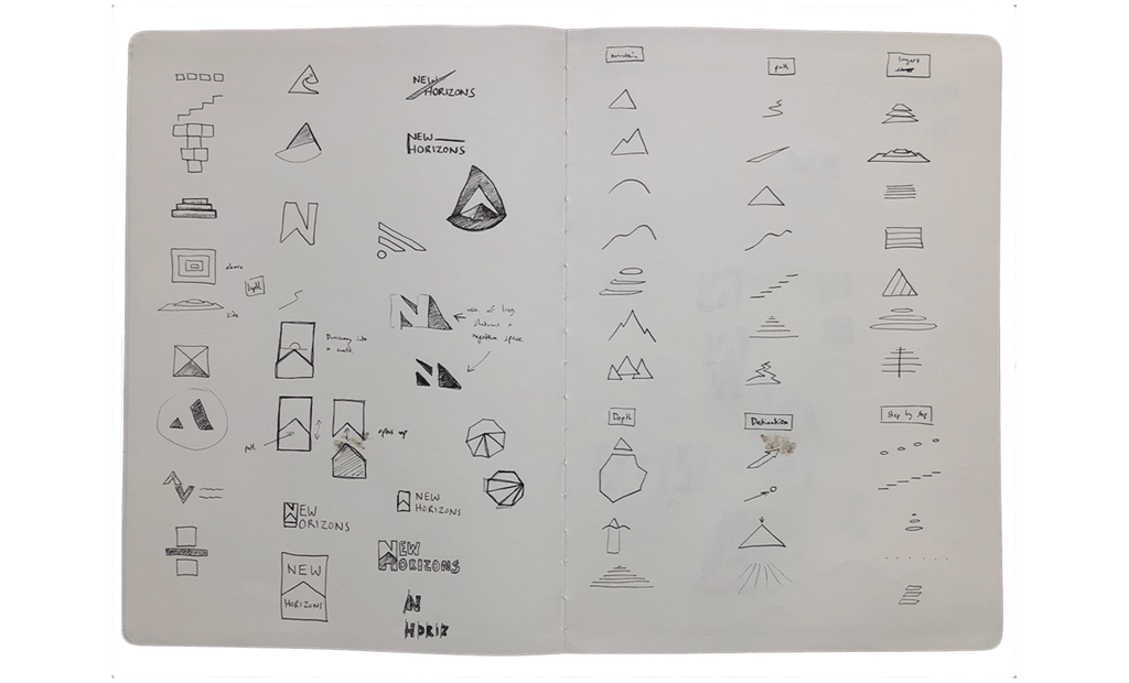 Before we jump into unpacking that process, it’s important to note that it was very clear from the beginning that this was the development of a ‘brand’ not just a ‘logo’. New Horizons had a logo before, but the wider design language and architecture was not there. This meant that the ‘brand’ was limiting and didn’t give room for creativity in the ways it could be applied. The new branding needed to be different.