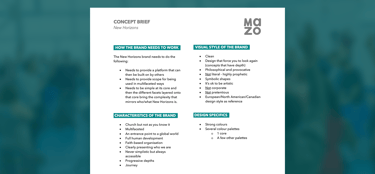 The final step was to identify a set of design principles. These principles guided the creation of the logo and came out of those initial discussions, but now I crafted them into principles that could empower others to take the brand and create media that would look and feel like New Horizons.