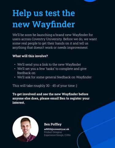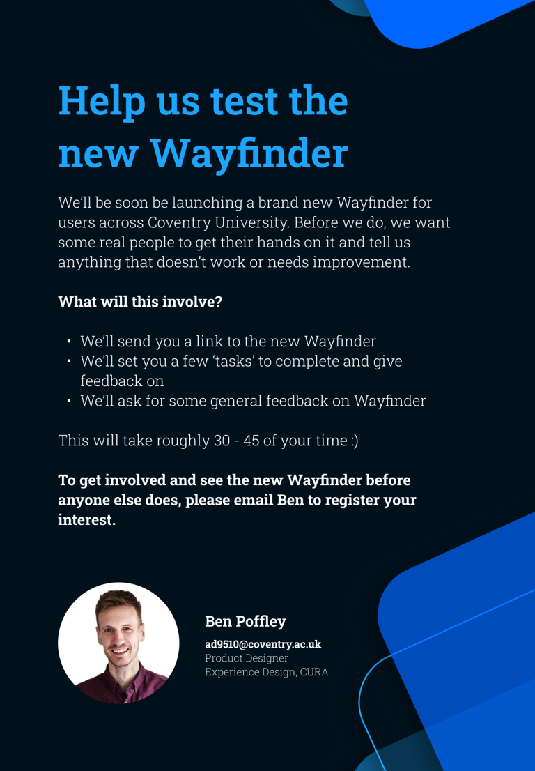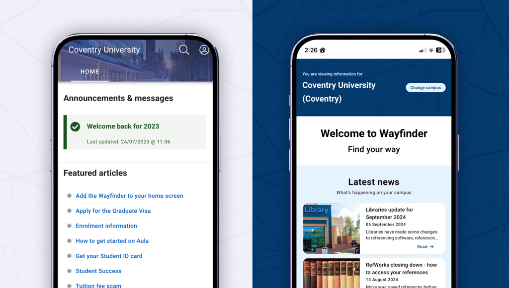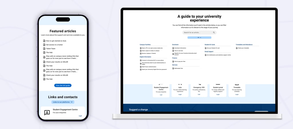 When I joined Coventry University, their existing tool, Wayfinder, had become a key part of student life, reflecting the hard work and commitment of the teams who brought it to life. It gave students a self-service tool to find answers independently, easing the burden on support teams and improving the overall experience.