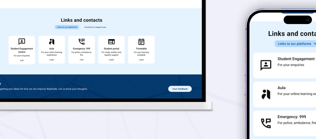 Summary: The Wayfinder project reimagined Coventry University’s self-service tool to enhance the student experience. By addressing technical limitations, centralizing knowledge, and improving usability, the project reduced support inquiries, streamlined navigation, and ensured scalability for future features. It built on Wayfinder’s success, creating a responsive, intuitive platform that empowers students and supports university growth.